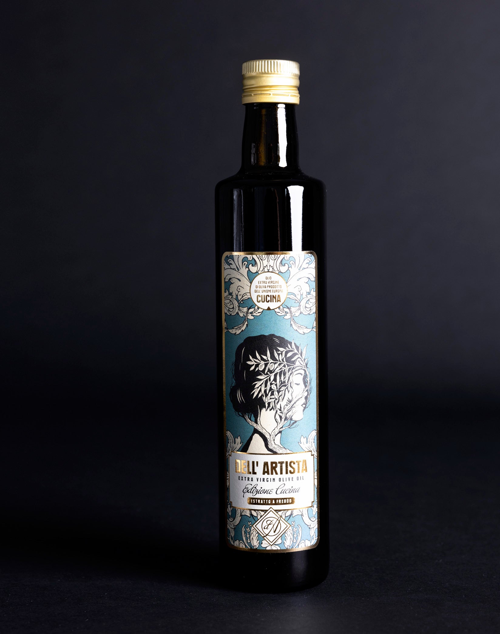 Dell’ Artista Edizione Cucina är gjord på Medelhavsområdets bästa oliver för säsongen. Oljan är fint balanserad mellan sötma och örtig fräschhet och lämnar en trevlig kvarvarande fruktig eftersmak. Oljan doftar ljuvligt av örter, mandel och havsbrisen från medelhavet.