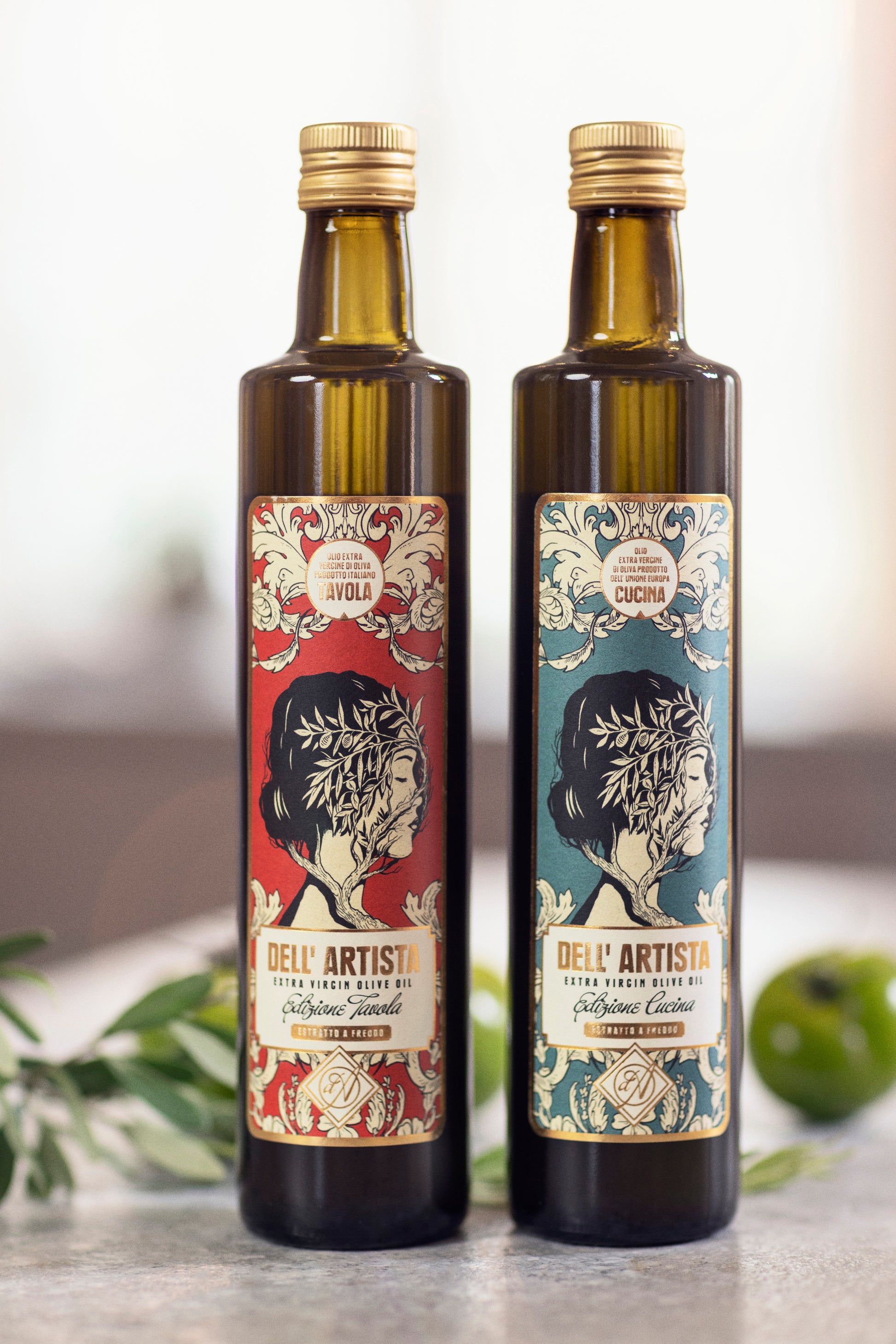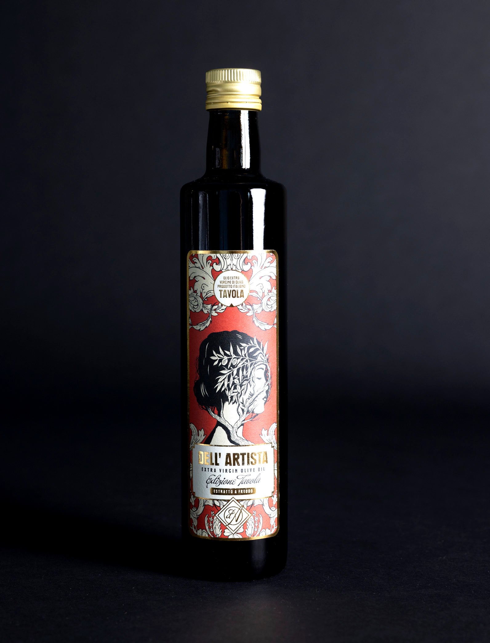 Dell’ Artista Edizione Tavola är gjord på säsongens bästa oliver. Cerasuolo och Biancolilla plockade i noga utvalda olivlundar på Sicilien och i Puglia. Olivskörden sker för hand i oktober – november och pressas enligt gamla traditioner.