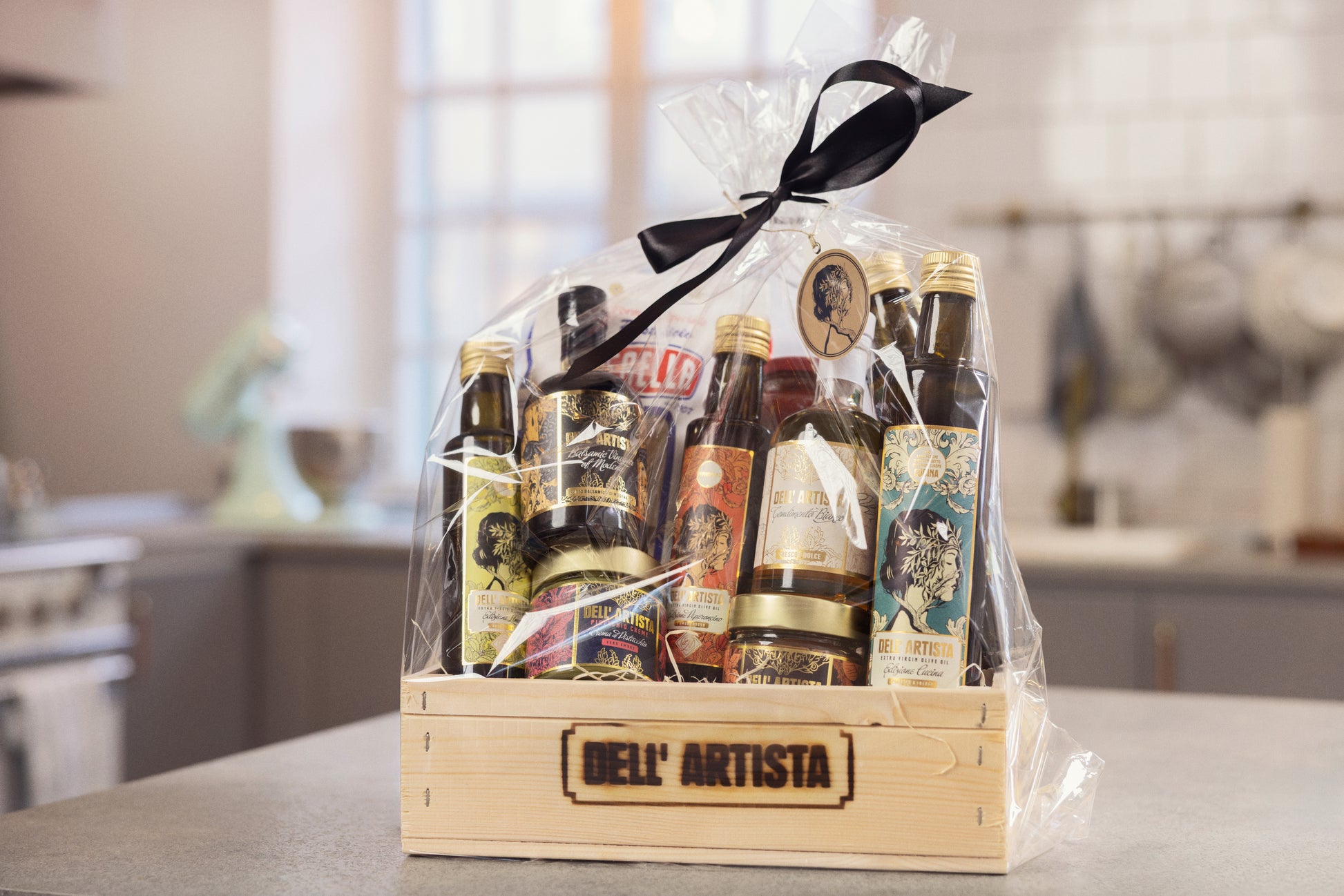 Dell Artistas exklusiva trälåda, cellofan och träull